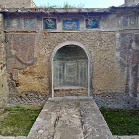 Going round this old place you can almost imagine meeting one of the original residents coming out of his home or maybe a bath-house. Here you find a lot of buildings almost intact with the lovely, mosaic household altars, frescoed walls, mosaic flooring where you can actually see the ‘wave’ effect of the earthquakes which took place during the eruption of the volcano, carbonized furniture such as beds and wardrobes, sliding doors, trellises…. It is just such a fascinating place that one hardly wants to leave it once inside.